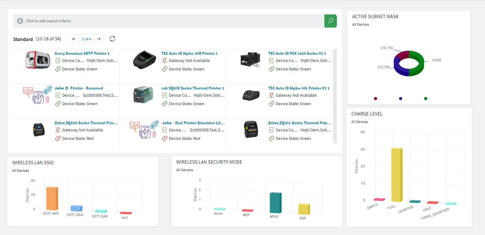 SOTI Connect delivers total visibility of your printers. It has three key visualization capabilities letting you “see” what’s happening with your mobile and industrial printers. All without the time, expense and hassle of having to physically visit them. They are: