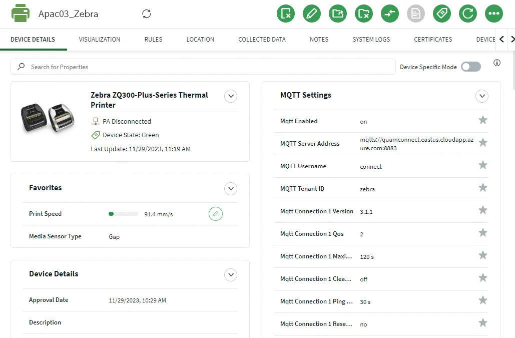 Everything about a printer is here. Battery serial number. Certificate history. System logs. If you need to know what happened – and when – the Device Information Page is the place to go.