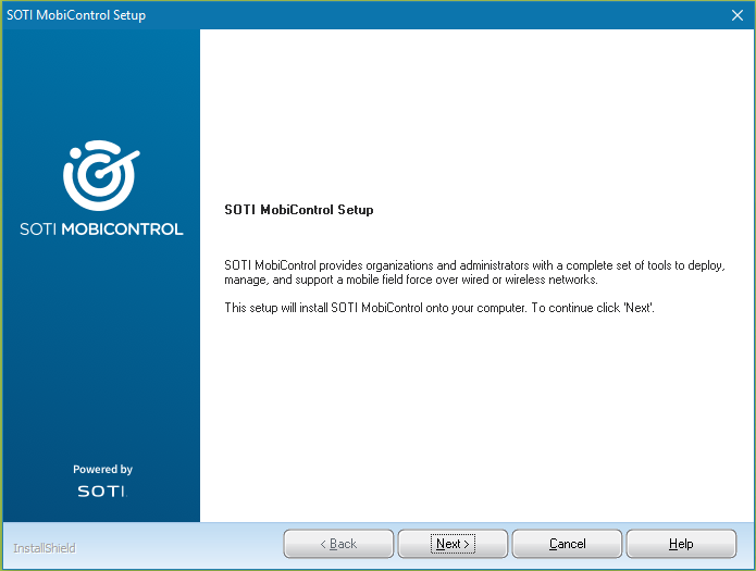 Run the SOTI MobiControl installer as an administrator to launch the installation wizard.