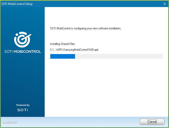 Database: Create Backup When enabled, creates a backup of the database. Configure the backup's location on the SQL Server instance. Database: Force Upgrade When enabled, forces the database to upgrade. Database: Start services automatically after upgrade / installation When enabled, services start immediately after SOTI MobiControl is installed. Tip: Disable this setting when performing installations or upgrades across multiple servers since you need to stop services to perform each new installation. Start services after all servers have been updated.The installation should take roughly ten to fifteen minutes. If you chose to install Microsoft SQL Server 2016 Express, it will install as part of the main SOTI MobiControl installation and take an additional few minutes.